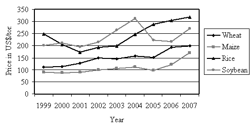 Figure I.1. Development of prices for four basic food crops since 1999 (Source: IMF) Some characteristic average data with respect to cereal production are shown in Figure I.2.