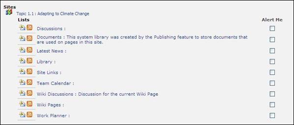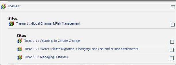 Clicking on the “alert me” option ( Please note that you may also subscribe to the RSS feeds and alerts from within any workspace of which you are a member. To do so, simply click on the “Actions” option in the corresponding space (see figure 4). Figure 4. Manual subscription to alerts and/or RSS feeds 3. How can I take part in the processes I’m interested in? 3.1 How can I contribute to the different workspaces? In the workspaces of the themes, topics, regions, major groups and political processes, as well as reading the latest news and articles, any VMS user may also participate in the discussion forums and surveys, and whatever other means the workgroup has developed for public consultation. However, if you are interested in playing a more active role in a workgroup, please click on “be part of a working group” on the VMS home page, which will take you to the workgroup request form (see figure 5). Selecting the workgroup(s) you are interested in will automatically add you to that group’s consultative group (please refer to annex 1 for a definition of user roles). Figure 5. Workgroup request form Being a member of a workgroup’s consultative group will allow you to view and comment on the documents produced by the topic coordinators and consortia, allowing you to bring your experience and perspective to the documents produced by the workgroup. If you actively contribute to the issue at hand, the coordinator of that group also has the ability to make you a member of the consortium or even a co-coordinator. 3.2 How can I work within a workspace? When you enter any workspace, you will see a number of functionalities in the centre of the screen, which are repeated in the left-hand menu (see figure 6). These functionalities are either “private” for the working and consultative groups, or “public”, meaning that all VMS users can view the information in question. You will only see the functionalities that your user rights allow you to view. Within each workspace, the public functionalities are the following: