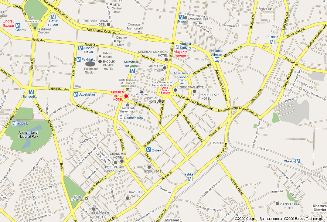 Гостиница "Ташкент Палас" расположена в самом сердце города Ташкента, напротив Большого Театра Оперы и Балета имени А. Навои, в нескольких шагах от Центральной площади Независимости и Гуманизма, Торгового центра. Удобное расположение гостиницы, вблизи от железнодорожного вокзала и аэропорта, сэкономит Ваше время и поможет сделать отдых полезней и приятней.