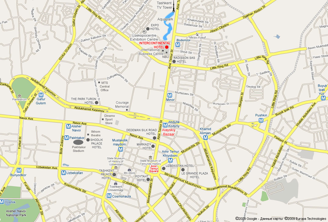 Отель "ИнтерКонтиненталь Ташкент" удобно расположен на территории Бизнес-Комплекса, около Национального Банка Республики Узбекистан, Торгового Комплекса "Ташкент Плаза" и Международного Бизнес-Центра, в 20 минутах от аэропорта и 5 минутах от центра города.