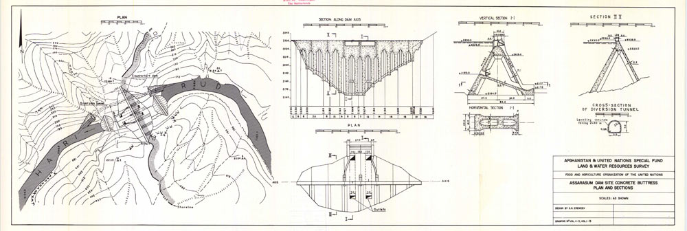 Assarasum Dam Site Concrete Buttress Plan and Sections |