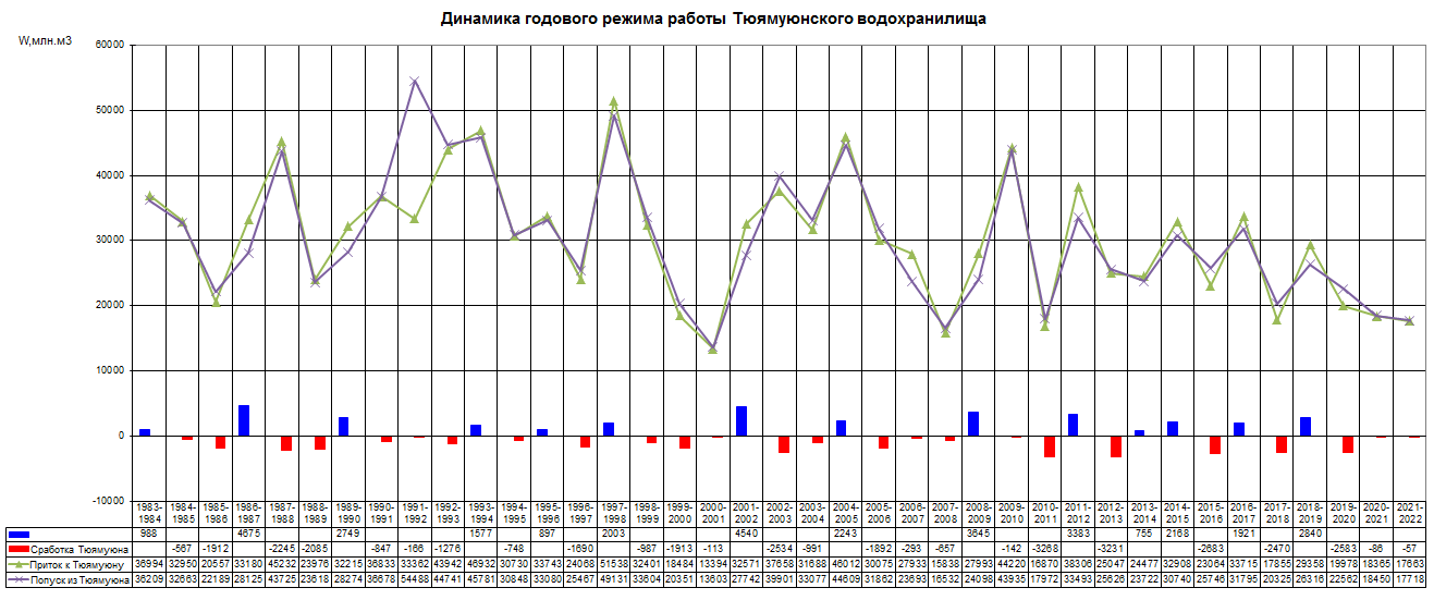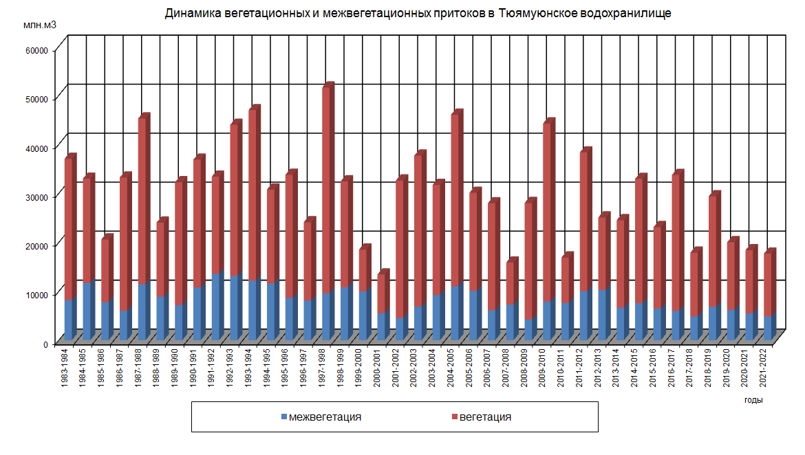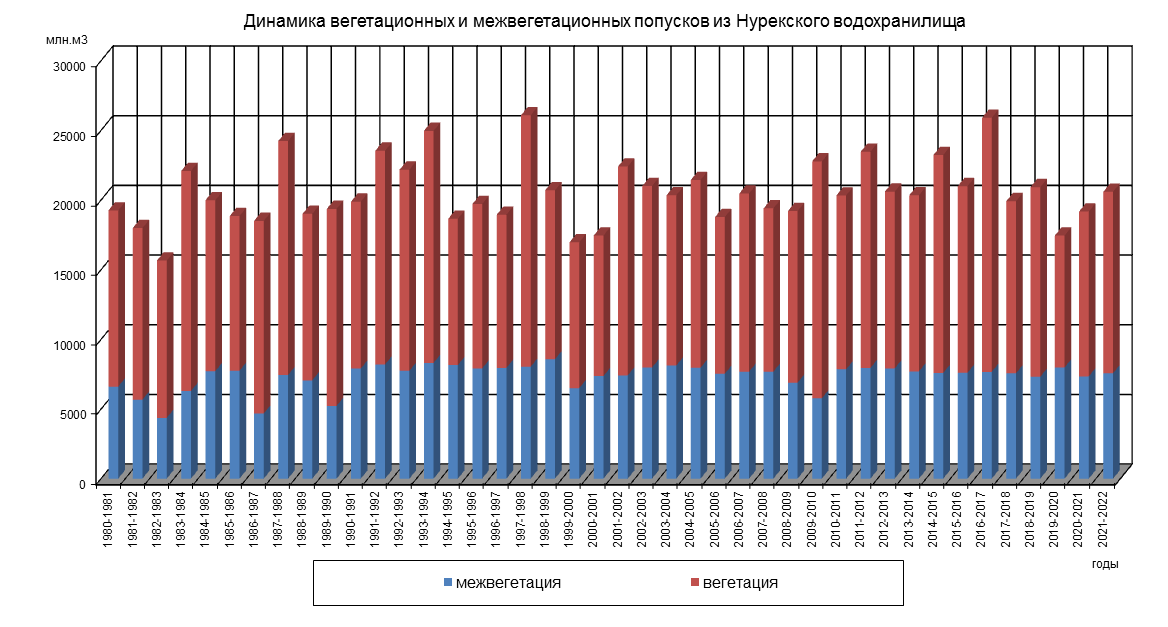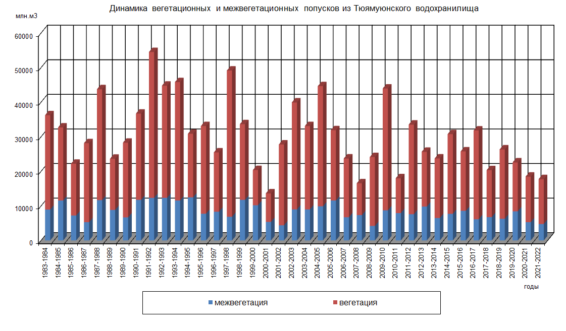 Динамика вегетационных и межвегетационных попусков из водохранилища