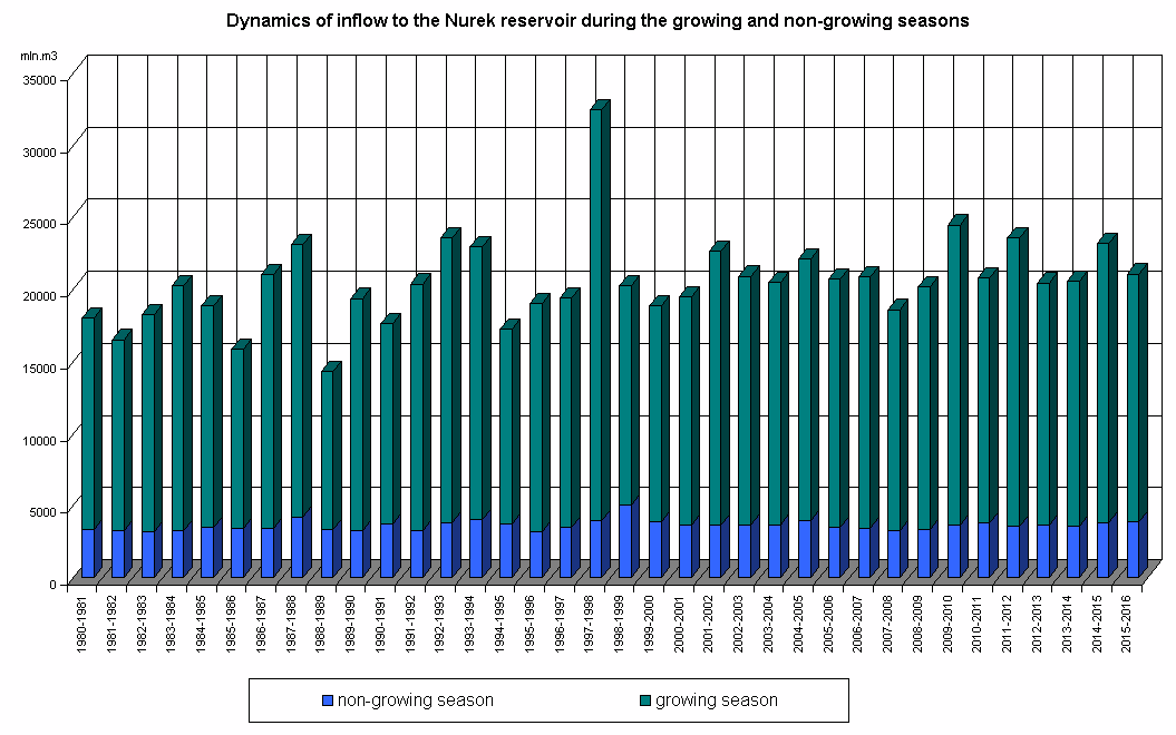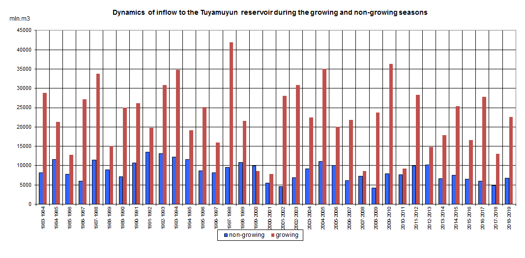 Dynamics of inflow to the reservoir during the growing and non-growing seasons