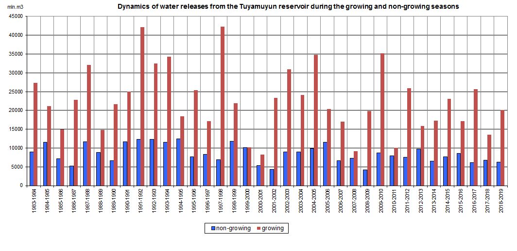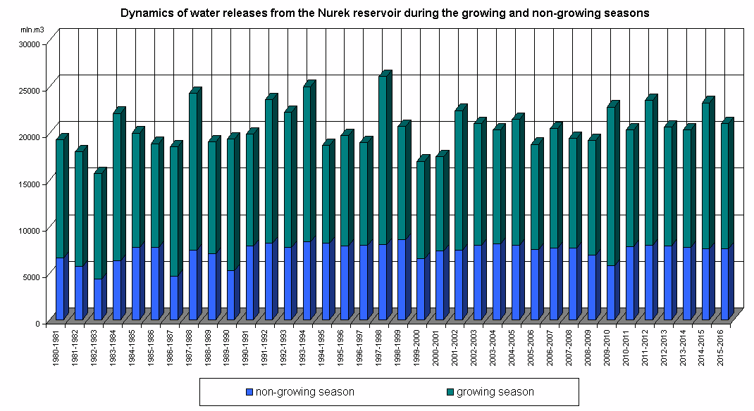 Dynamics of water releases from the reservoir during the growing and non-growing seasons