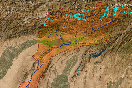 Panj river basin map based on satellite images