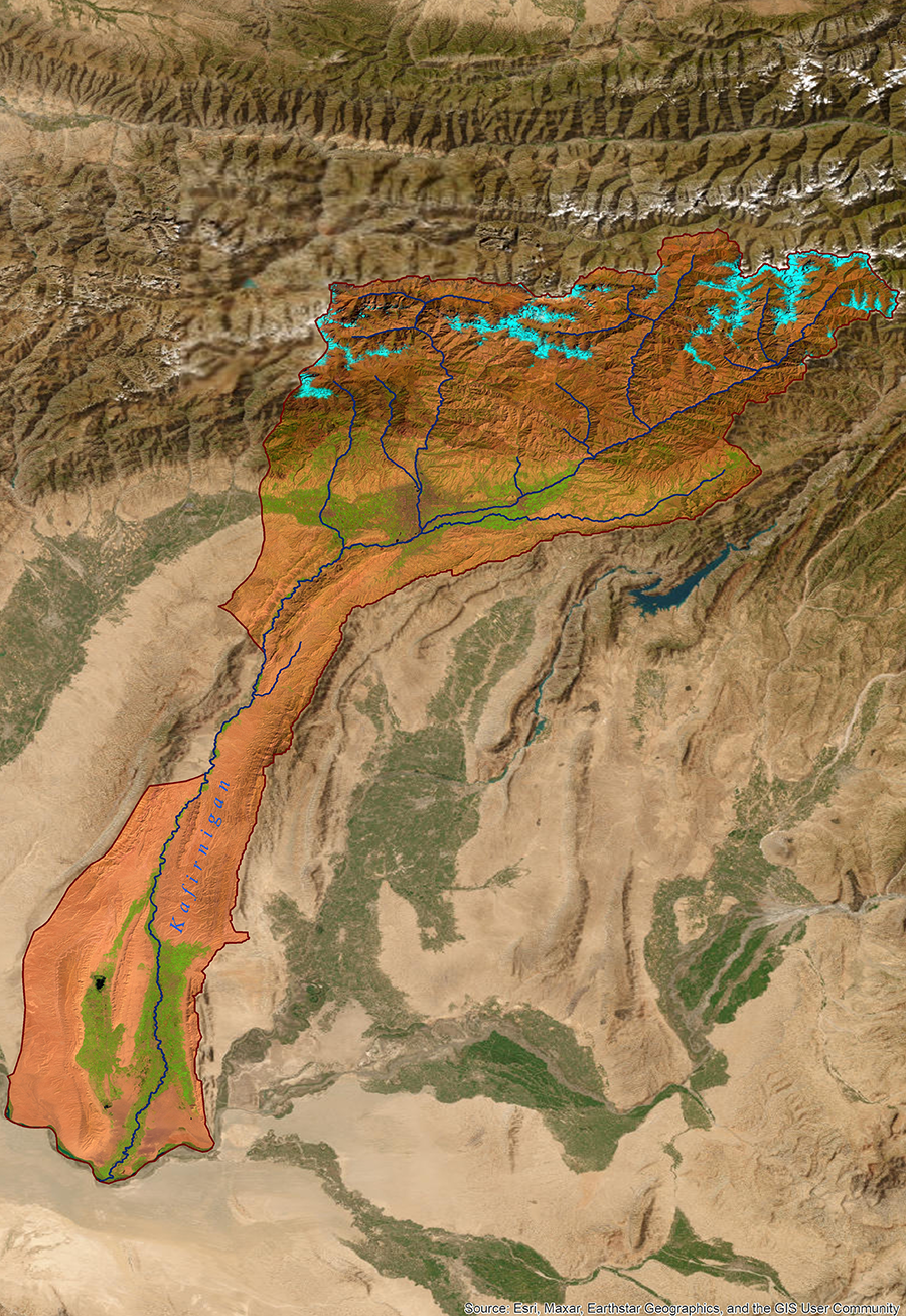 Location of the Kafirnigan basin in the Amu Darya River basin