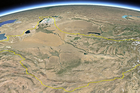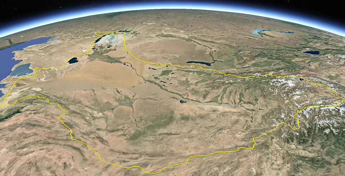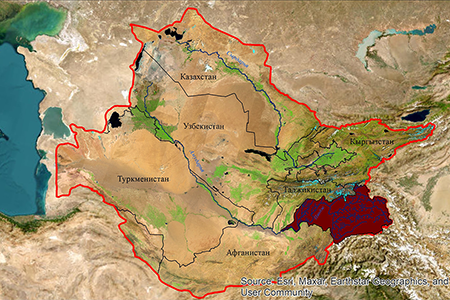 Amu Darya river basin map based on satellite images