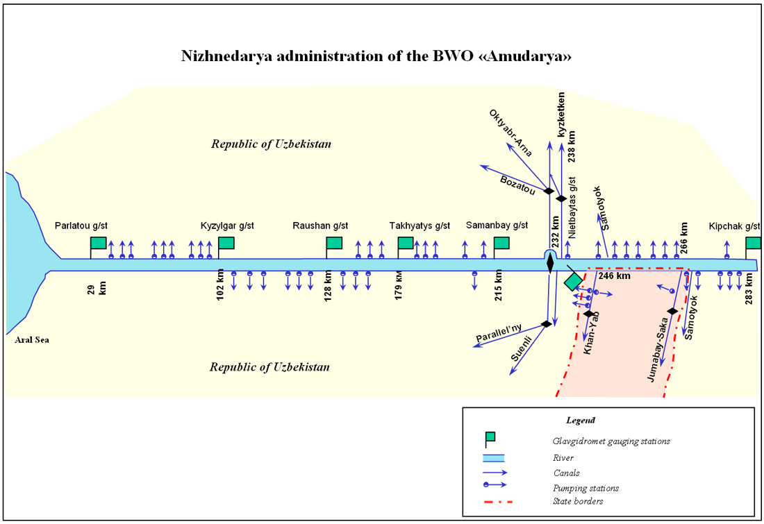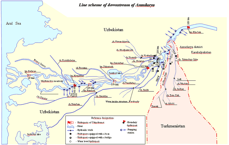 Linear scheme of downstream of Amudarya river