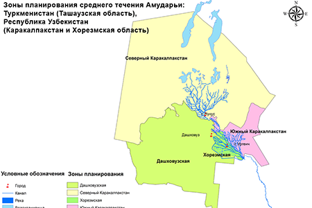 Planning zones in low stream of the Amudarya river basin: Dashkhovuz province, Turkmenistan; Khorezm province and Karakalpakstan, Uzbekistan