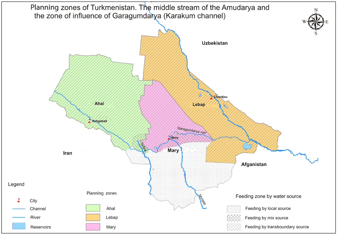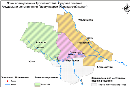 Planning zones in middle stream of the Amudarya river basin: Lebap, Akhal and Mary provinces, Turkmenistan
