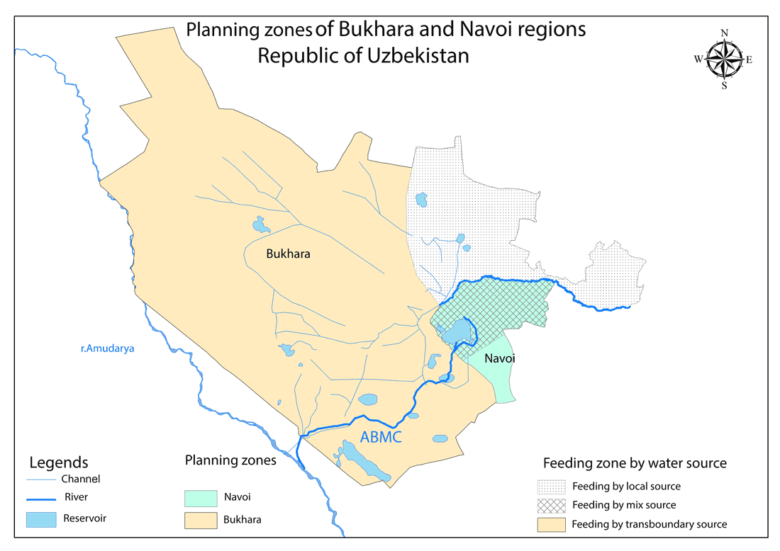 Planning zones in middle stream of the Amudarya river basin: Bukhara and Navoi provinces, Uzbekistan