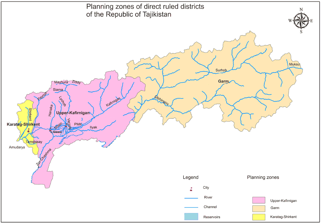 Planning zones in upstream of the Amudarya river basin: Districts of Republican Subordination, Tajikistan