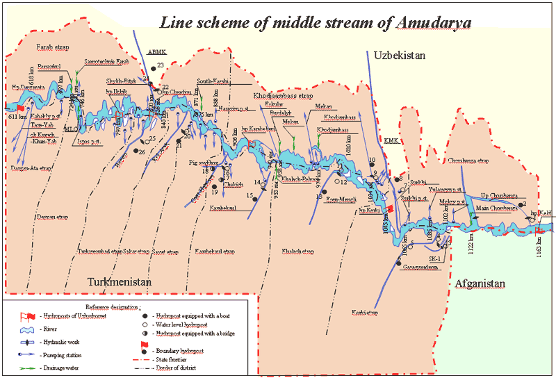 Linear scheme of middle stream of Amudarya river