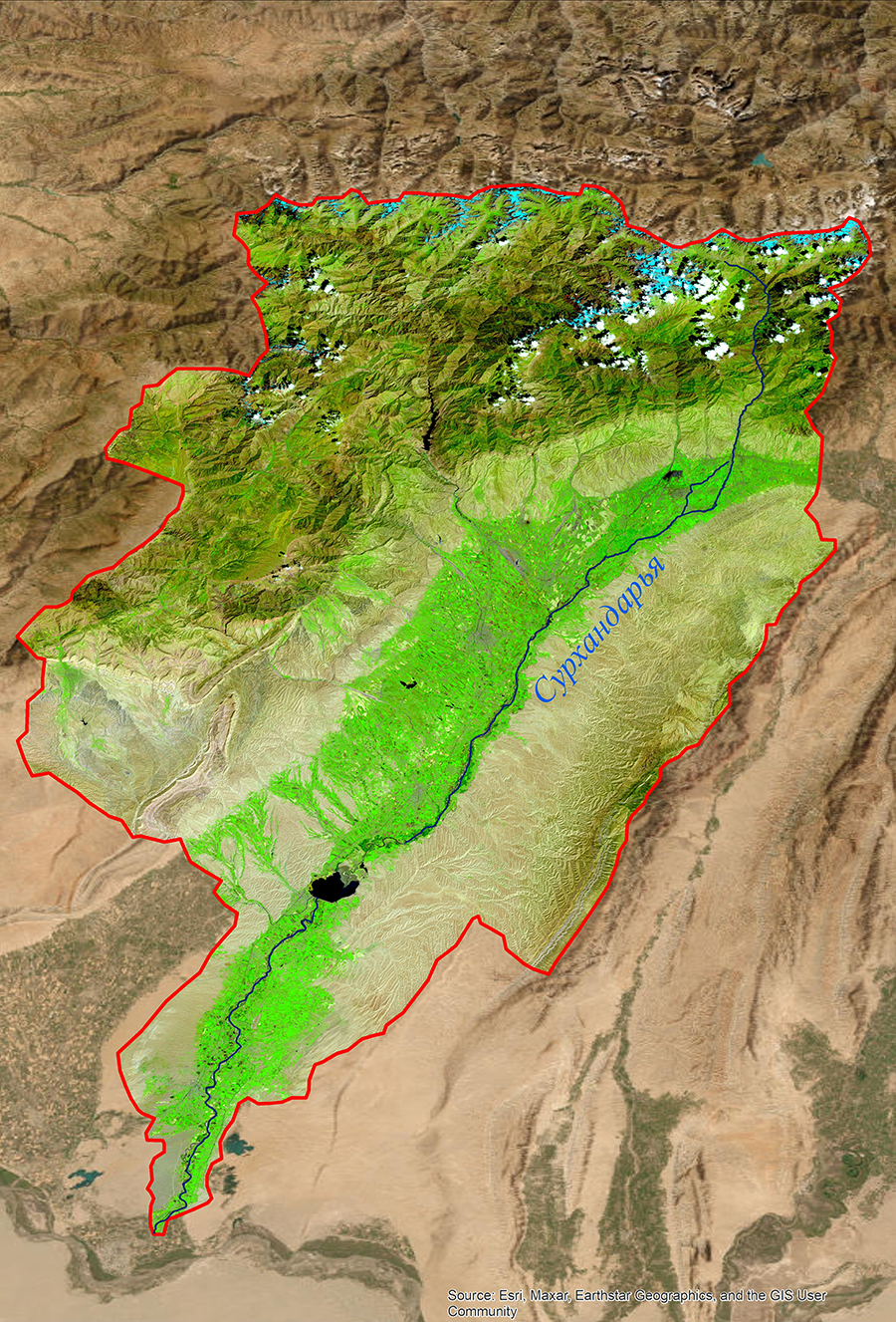 Surkhandarya river basin map based on satellite images