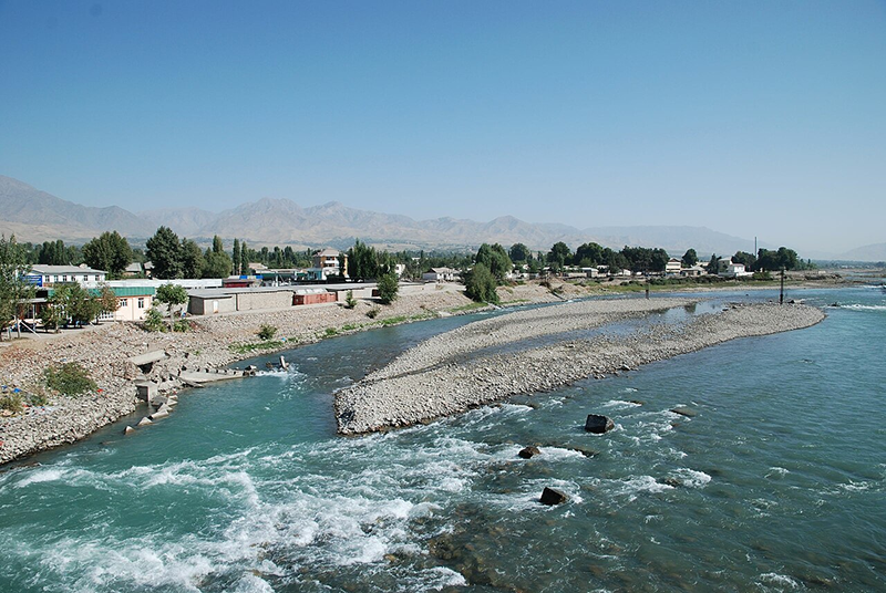 For part of its course, it forms the border between Tajikistan and Uzbekistan. Its main tributaries are the Varzob and Khanaka from the right, and the Elok from the right.