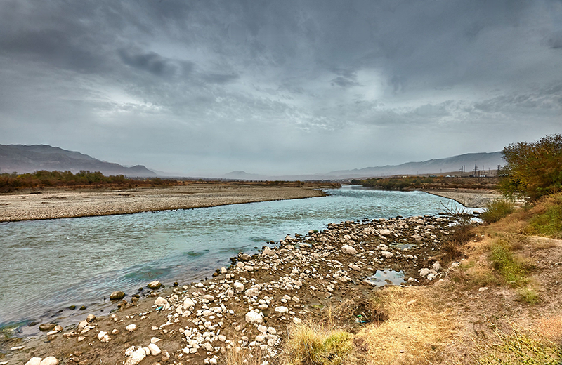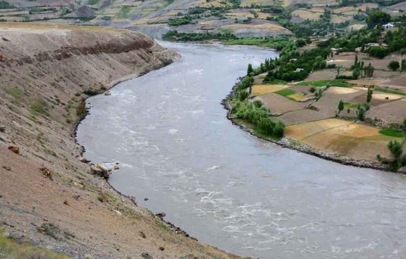 The Amudarya River, formed by the junction of the Panj and Vakhsh rivers, is the largest river in Central Asia and the Aral Sea basin in terms of water content. The length of the river is 2,540 km from the headwater (and 1,415 km from the junction point), while the catchment area is 309,000 km2 (to Kerki town). Three large right tributaries (Kafirnigan, Surhandarya and Sherabad) and one left (Kunduz) flow into the Amudarya river within the middle reach. Further up to the Aral Sea it has not any tributary. It is fed largely by water from melted snow, thus maximum discharges are observed in summer and minimum ones in January-February. Such availability of the flow within a year is very favorable to use water of the river for irrigation. While passing the plain, from Kerky to Nukus Amudarya losses the most part of its flow in form of evaporation, infiltration and withdrawal for irrigation. Concerning sediment transport the Amudarya is the first among all rivers in Central Asia and in the top in the world. The main flow of the Amudarya river is originating on the territory of Tajikistan. Then, the river flows along the border between Afghanistan and Uzbekistan, then it flows across Turkmenian territory and again it returns to Uzbekistan, where it discharges into the Aral Sea. About 14.6 % of Amudarya water is formed on the Afghan territory and in Iran. About 8.5% of the Amudarya flow is formed in Uzbekistan.