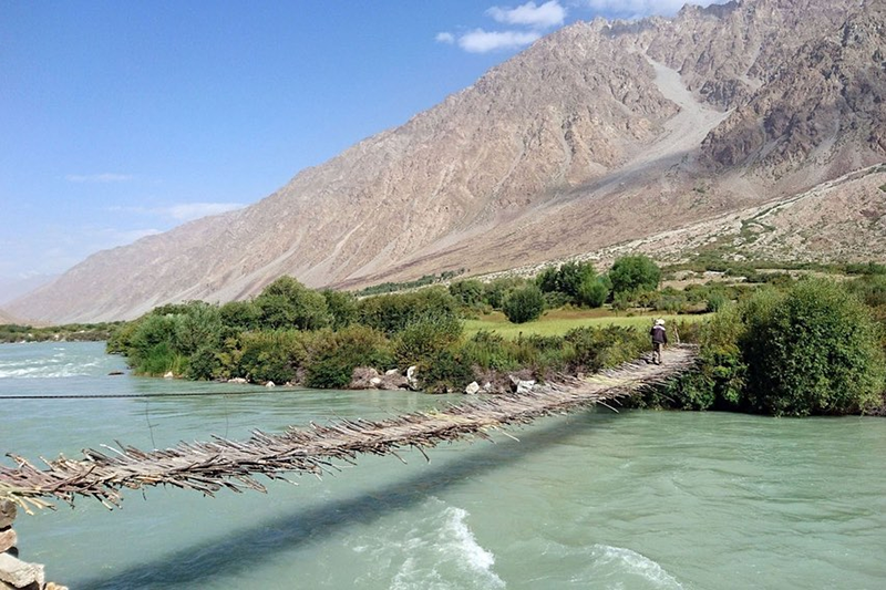 Panj is a river in Afghanistan and Tajikistan and a tributary of the Amu Darya. The river is 921 kilometres long and has a basin area of 114,000 square kilometres. The river is formed by the confluence of the Pamir River and the Wakhan River. From there, it flows westwards, marking part of the border of Afghanistan and Tajikistan.