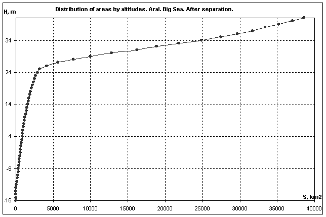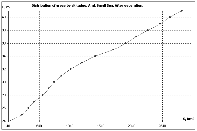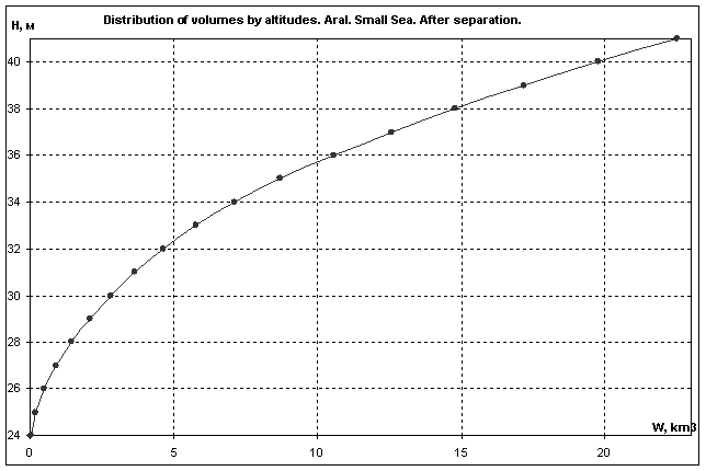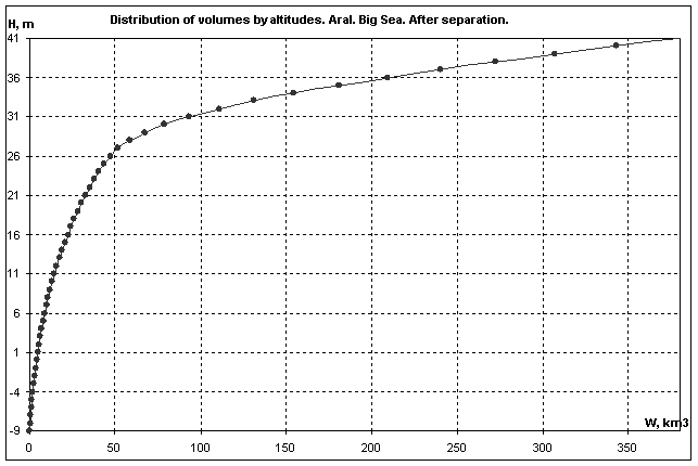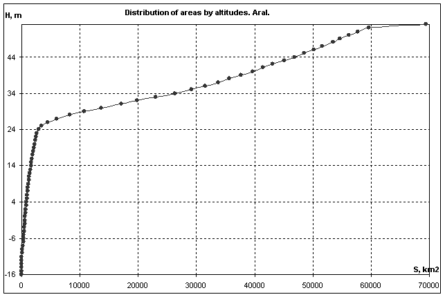 Database of the Aral Sea / Distribution of areas and volumes by altitudes