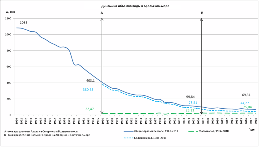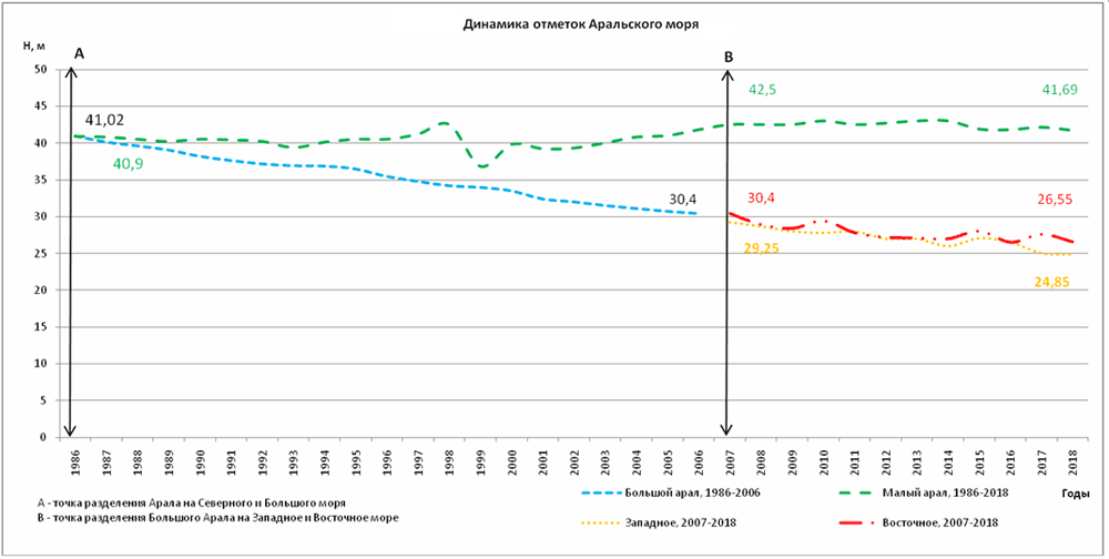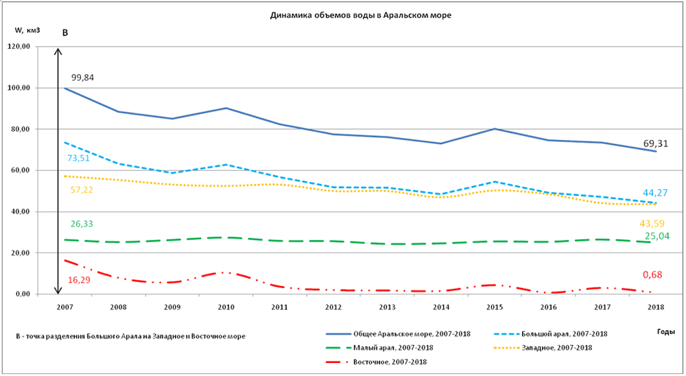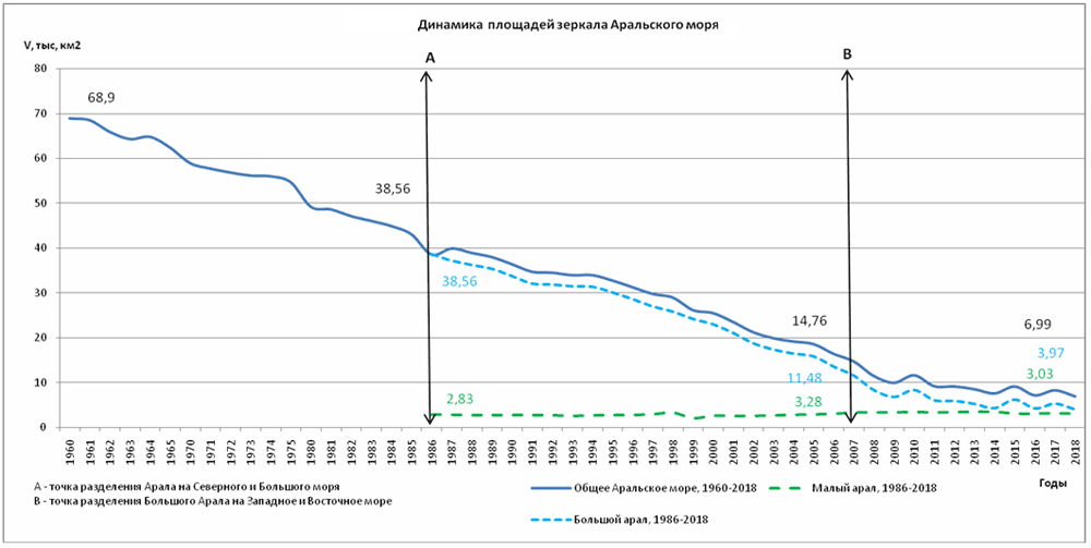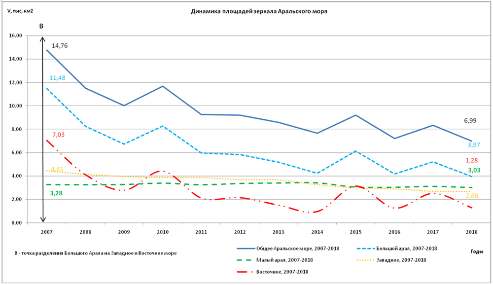 База данных по Аральскому морю / Основные морфометрические характеристики Аральского моря (отметка уровня воды, площадь зеркала, объем)