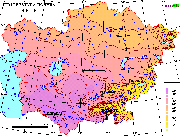 Средняя температура июля на низких высотных отметках, в долинах и пустынях, изменяется от 26oС на севере до 30oС на юге, с максимальной температурой 45-50oС. Среднеянварьская температура изменяется от 0oС на юге до -8oС на севере с абсолютным минимумом -38oС. Количество осадков в низинах и долинах 80-200 мм в год, осадки в основном выпадают зимой и весной. В то же время в предгорьях выпадает 300-400 мм осадков, а на южной и юго-западной стороне горных цепей - 600-800 мм.