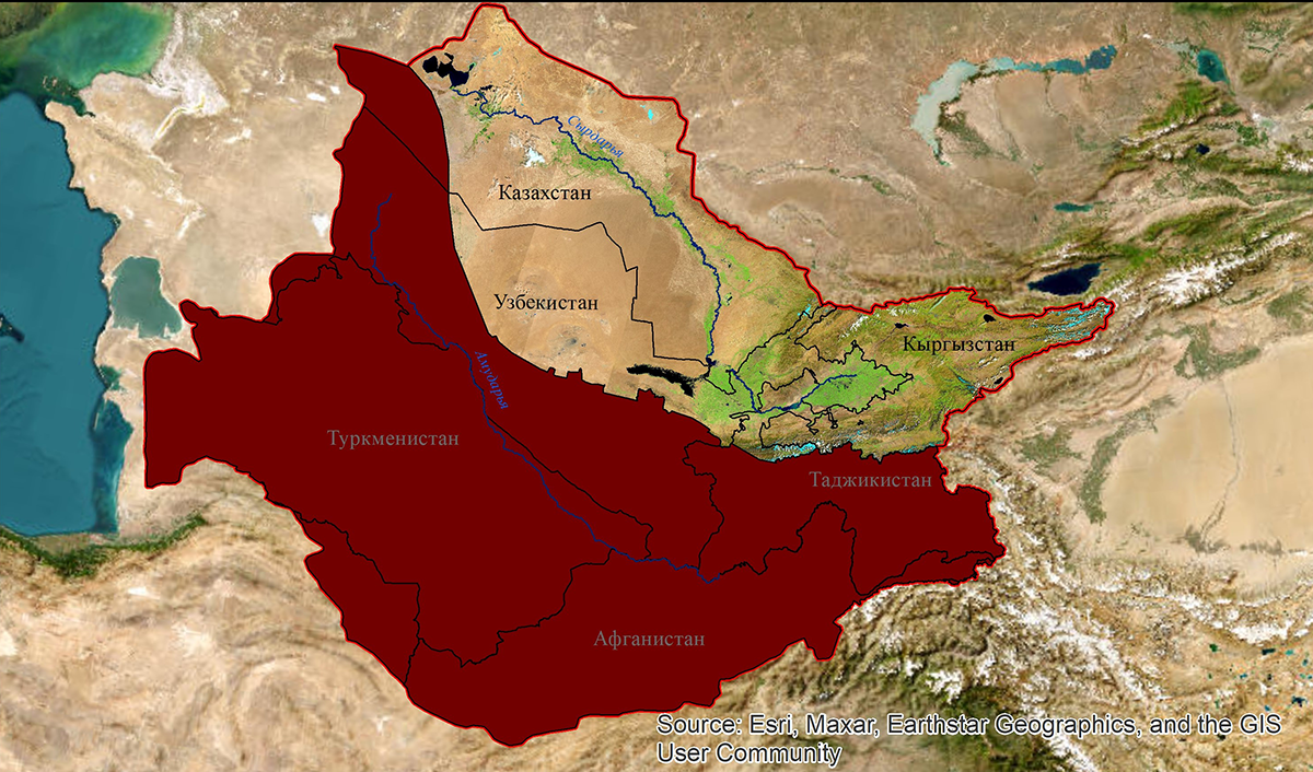 Расположение бассейна реки Пяндж в бассейне Аральского моря