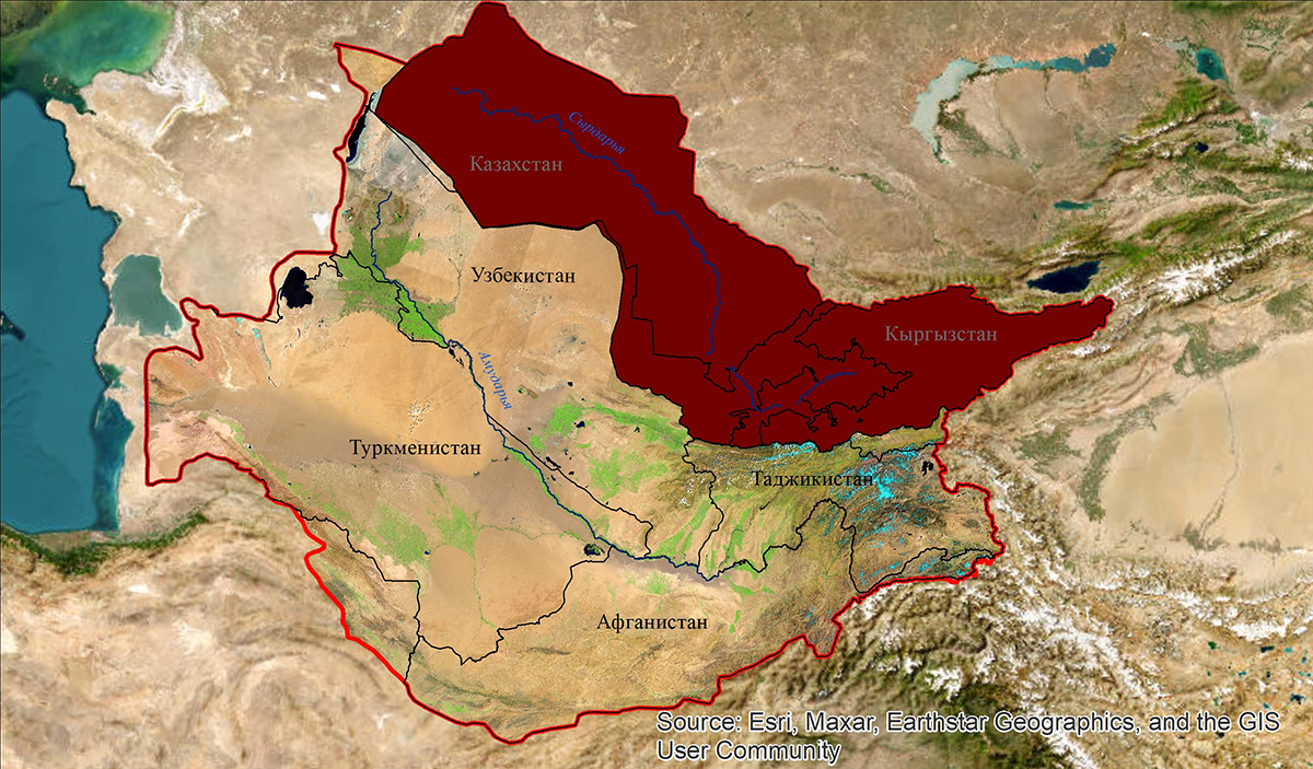 Расположение бассейна реки Карадарья в бассейне Аральского моря