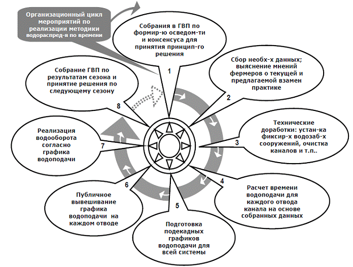Почасовое распределение воды – это более гибкое водораспределение при дефиците воды. После проведения тренингов и обучения персонала АВП почасовому водораспределению уменьшились конфликты между водопользователями.