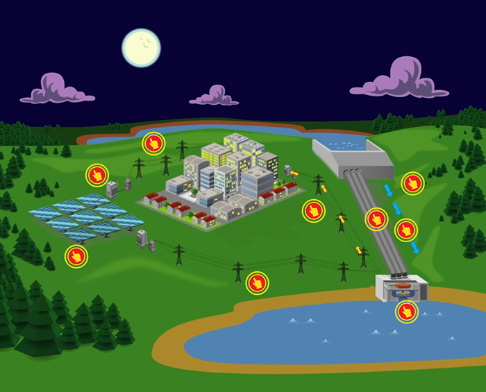 When the demand for electricity is low, a PSH facility stores energy by pumping water from the lower reservoir to an upper reservoir. During periods of high electrical demand, the water is released back to the lower reservoir and turns a turbine, generating electricity.