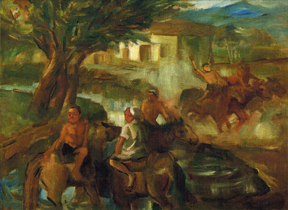 Александр Волков. Мальчики, купающие лошадей, 1940-е