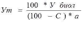 Ут – урожай зерна или другой сельскохозяйственной продукции при стандартной влажности, ц/га;