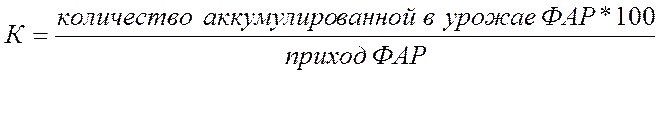 SР*109 – количество приходящей ФАР за период вегетации культуры в данной зоне, млрд. ккал/га;