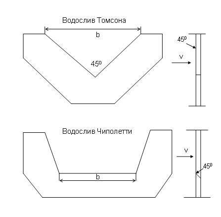 • Водосливы с тонкой стенкой, различного профиля;