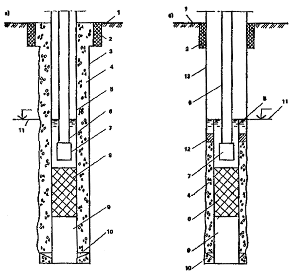 12 - сальниковое уплотнение; 13 - обсадная труба
