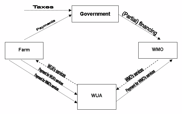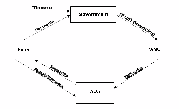 As is well-known from global and regional experiences, to reduce the financial load on the state and create good relationship between provider and user of irrigation services (by changing direction of financial flows) it is advisable to adopt water pricing, where water users pay (usually, partially) for irrigation services of water suppliers. Here, WMO’s budget is formed through state budget partially and irrigation fees (in Kyrgyzstan, Tajikistan and Kazakhstan) (Figure 2).