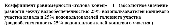 расположенные выше по течению источника орошения водопользователи, лучше обеспечены водой, чем нижерасположенные. Коэффициент равномерности «голова-конец» отражает справедливость распределения воды по длине канала.