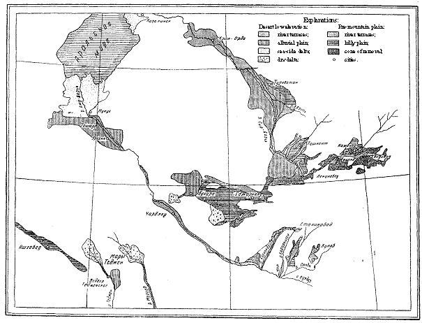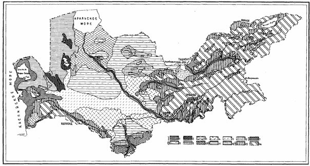 Desert zone of the Central Asian republics is a zone of ancient irrigation. In many classifications the highest taxonomic units are: Turan plain, mountains Pamir, Tyanshang and Turkmen-Khorasan mountain country.