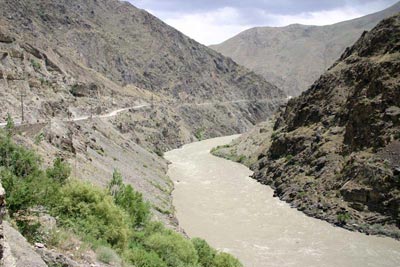 The Caphirnigan is a river in Tajikistan. Its length is 387 km, the area of the basin is 11.6 ths.sq.km. The average expense is 169 m3/sec. It is formed by the confluence of two rivers: the Sardan-Miena and the Sorbo. It takes its beginning on the southern slope of the Gissar Range. In the upper reaches it flows on a granitic gorge; in the middle reaches it crosses the wide Gissar valley where here and there the river-bed of the river is widen to 200 m, forming some islands. Lower a confluence of the last tributary comed into the gorge again. Here and there it is widen to 2 km. In the lower reaches of the river it is broken into some branches, forming some islands of pebbles. Here and there they are covered by thick vegetation. Two high-floods are observed on the river. The first high-flood takes place in April when snow melts and the tributaries with low "vodosbor" (the rivers Iliak, Liugob,Simiganich) are disninguished with the most expenses. The second high-flood takes place in June-July from the intensive melting of alpine snow and glaciers in the basins of its tributaries: the Sardan-Muena and Varzob.