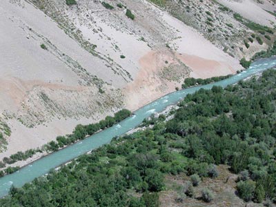 Bartang is the greatest tributary of the Piandj. Its length is 405 km, the are of its basin is 32700 sq.km. It fall out under the name of Aksy from the lake Chakmaktinkul placing on the territory of Afhganistan. After pouring together with the river the south Akbaital (in the limits of the Pamirs upland) that river receives another name. That name is the Murgab. It preserves that name to the Sarez lake and then it receivesthe name of the Bartang. Bartang flows in a thin rocky gorge between the Rushan and the Yazgulem Ranges to the very mouth.