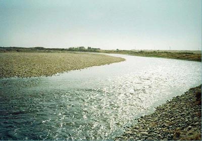 The character of the hollow is changed between the gorges Eldjik and Tiuiamuiun. Here the river flows down in the redical rocks. That is a thickness of sand and crumbly sandstone of the terriary period. The slopes of the hollow are steep and precititous; a height is 10-20 m. On this plot sands of the Kizilkums and Caracums come to the hollow of the river directly. Lower the gorge Tiuiamuiun the valley, of the Amu Darya become roider than some tens of kilometers. It becomes thinner only about the gorges Djumir-Tau and Tahia-Tash. On this plot of the hollow the most quantity of the cultural lands are concentrated. They are irrigated by the greatest irrigation systems. The complex system of dams is stretched here along the low bank of the river, protecting agricultural lands from submergence during high water and winter accumulation of ice. In the district of the town Nukus a dry branch Daryalik (Kunia Darya) moves away from the Amu Darya in the left. In the past the part of the Amu Darya waters flowed down along it to the Saricamish hollow and from it the Amu Darya flowed down to the Caspian Sea along the ancient river-beg. In the end of XIX c (1878) the waters of the Amu Darya broke through to the Saricamish hollow during flood-time. It is detemined that flow from the Saricamish hollow was along the Uzboy still in the Middle Ages. The flow of water was not lengthy but it was interruped. Because of it there were no lengthy settlements of the people on the banks of the Uzboy in that period. The flow of water along the Uzboy was almost to the end of the XVI c. The Amu Darya delta is began lower the town Nukus by the town Tahia-Tash. The delta is a weekly sloping plain crossed by the numerous channels.
