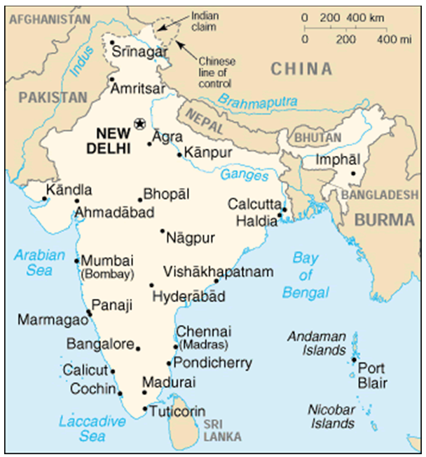 Рис. 2.1 Схематическая карта рек Инд, Ганг и Брахмапутра. Источник