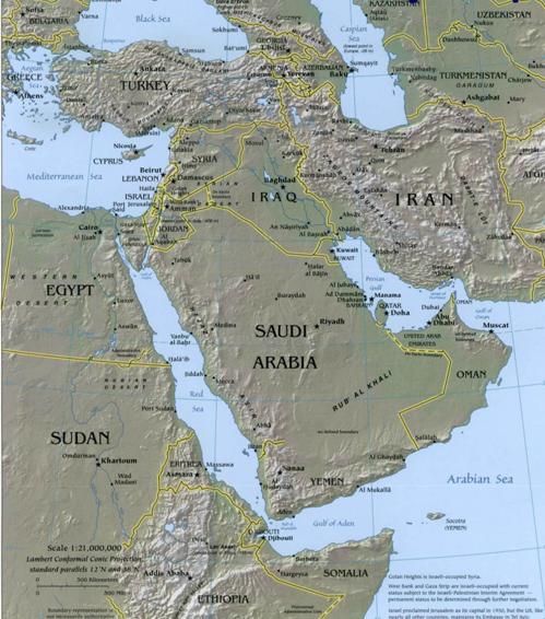 Рис. 2.4. Схема Среднего Востока с бассейнами рек Тигр и Евфрат