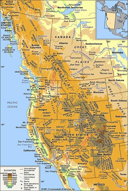 Рис. 5.2. Схема рек Колумбия (Канада-США) и Колорадо (США-Мексика)