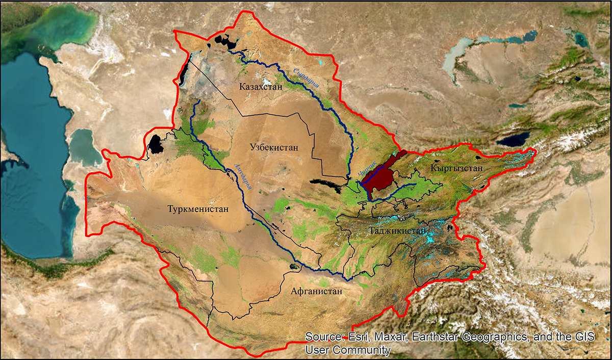 Расположение бассейна реки Чирчик в бассейне Аральского моря