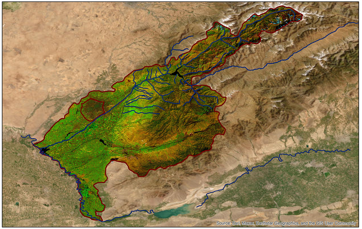 Chirchik river basin map based on satellite images