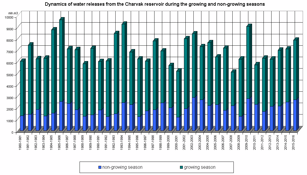 Dynamics of water releases from the reservoir during the growing and non-growing seasons