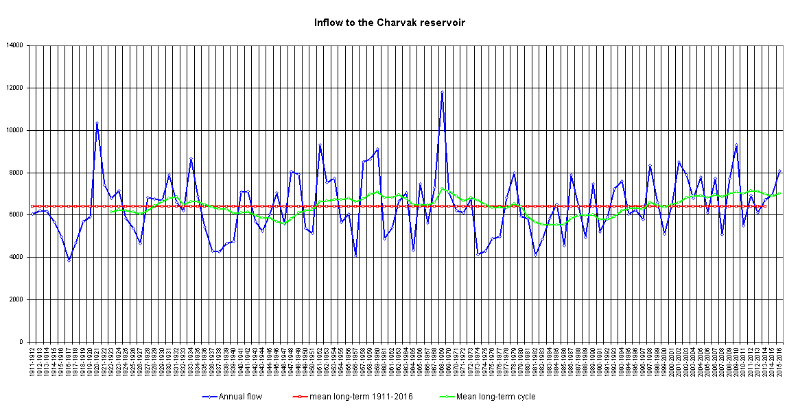 Average monthly values (water flowing into the Charvak reservoir)