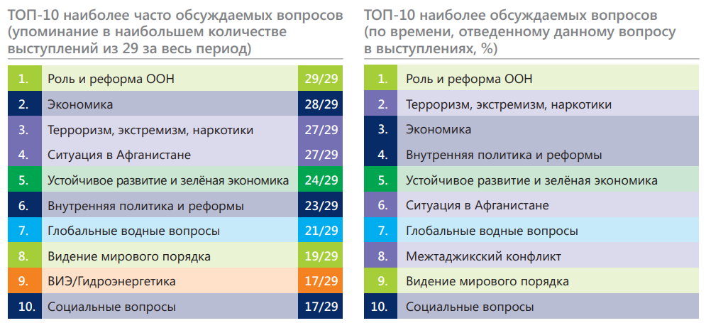 «В качестве рекомендаций касательно тематического охвата будущих выступлений Таджикистана на ГА ООН можно отметить следующее: