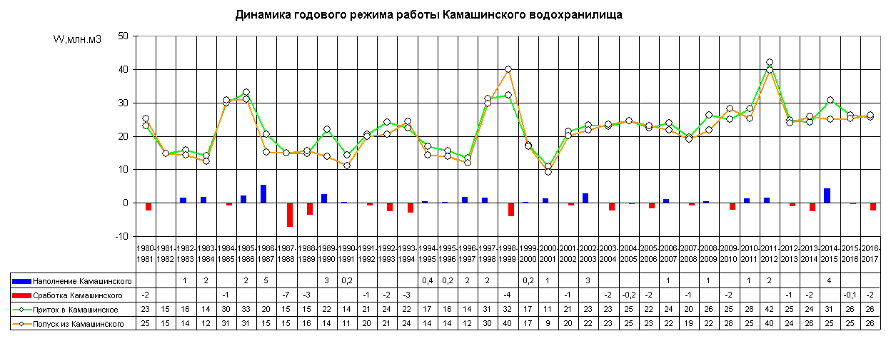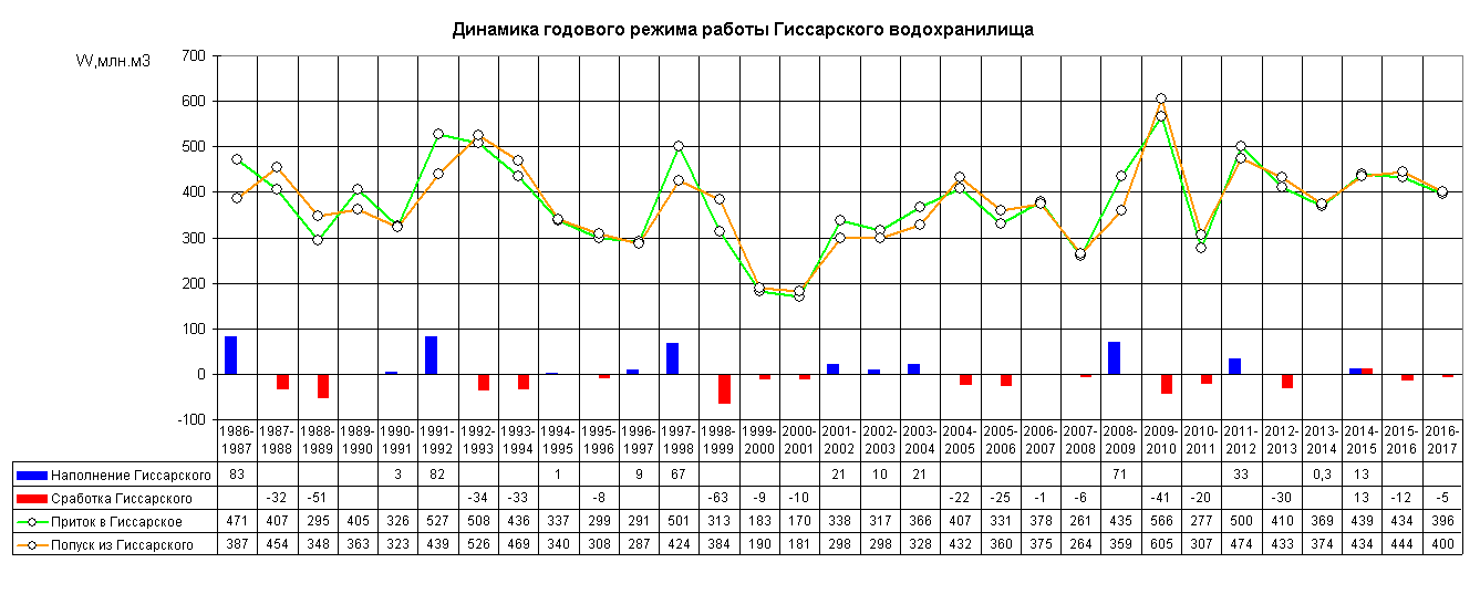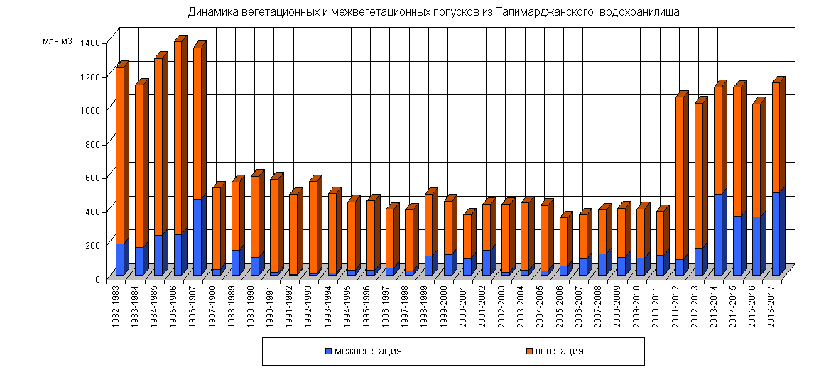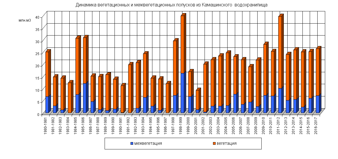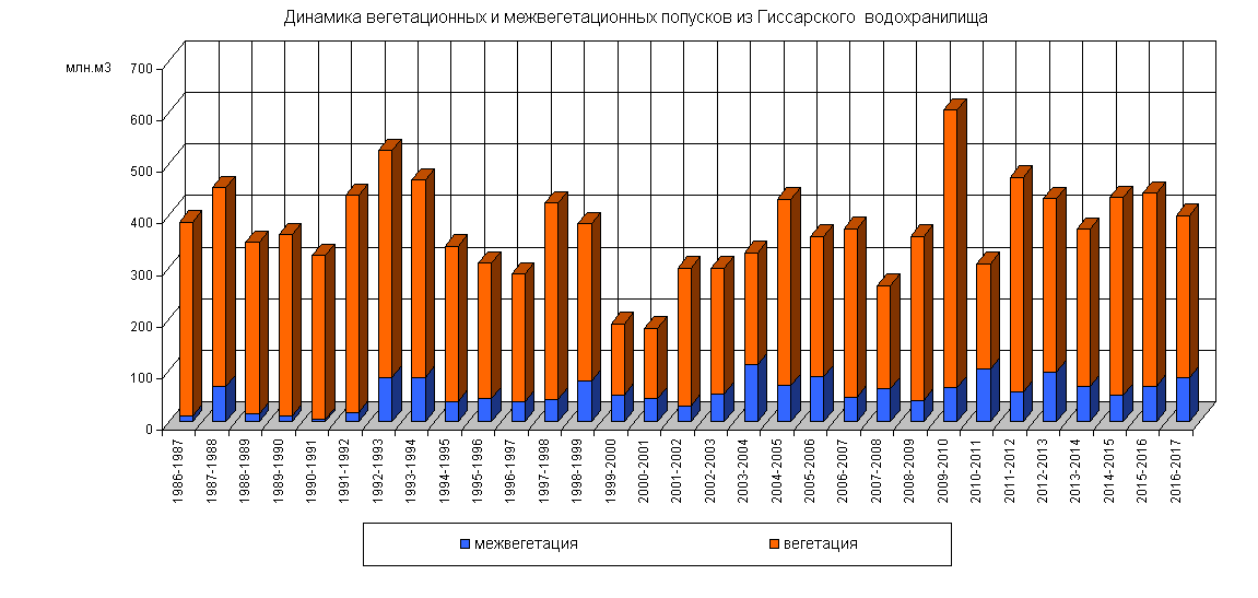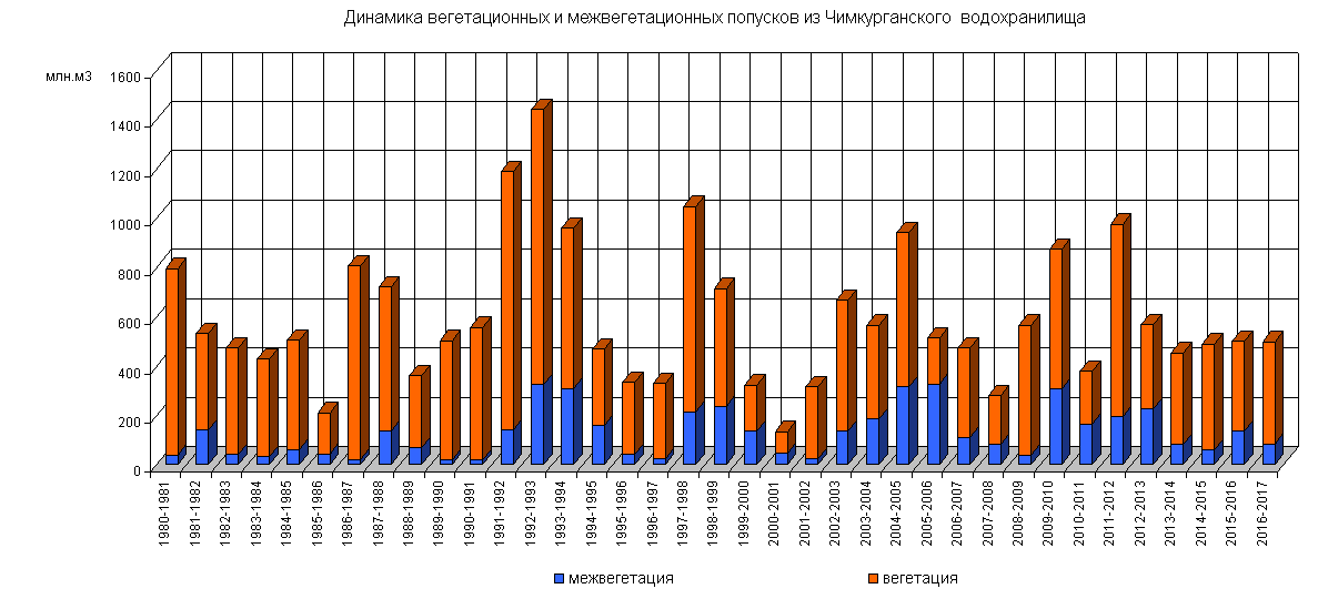Динамика вегетационных и межвегетационных попусков из водохранилища