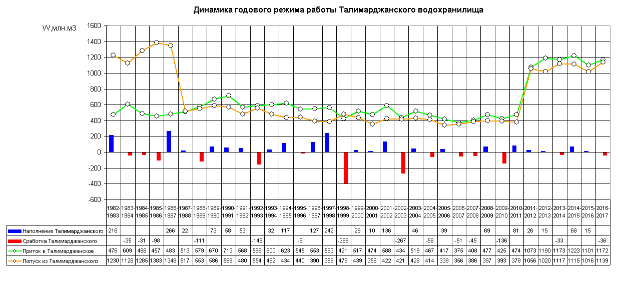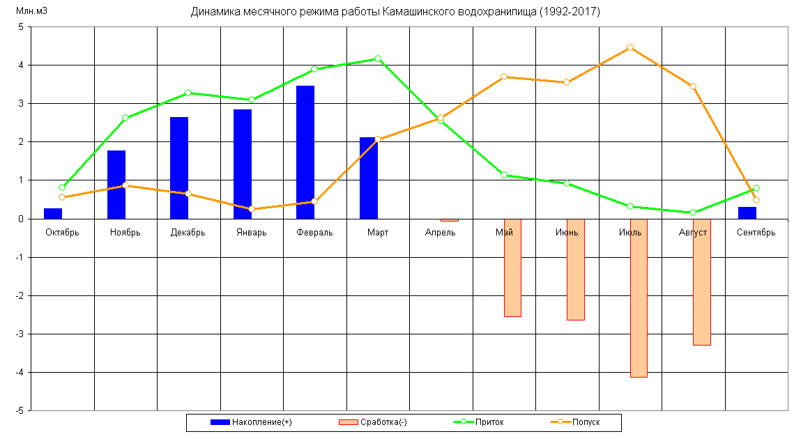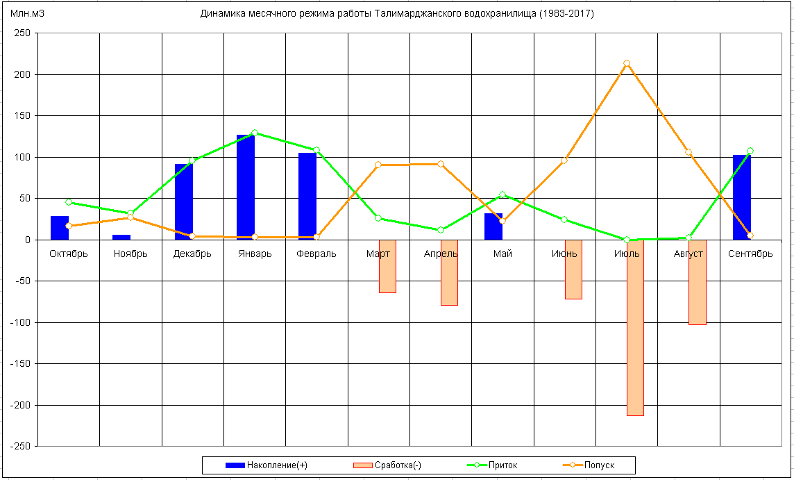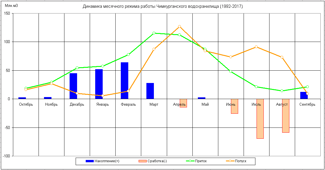 Динамика месячного режима работы водохранилища (1983-2017)
