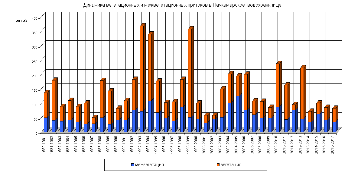 Динамика вегетационных и межвегетационных притоков в водохранилище